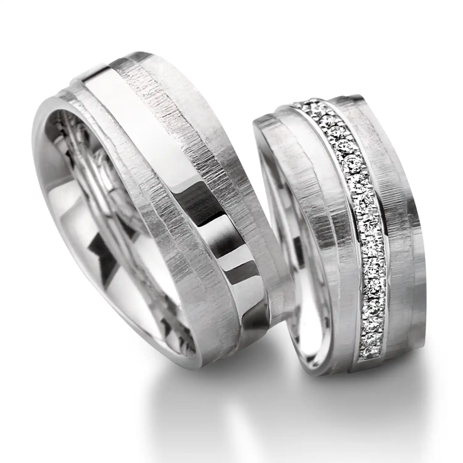 Ringpaar 750 Weißgold, Bar Setting, 17 Brillanten, F-G VS 1.7 ct.